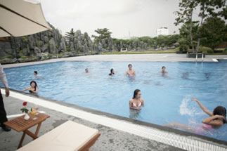 Hồ bơi nước mặn của chúng tôi có thể đáp ứng được nhu cầu cơ thể của bạn. Bể bơi ngoài trời giúp bạn có thể tận hưởng được bầu không khí trong lành cùng với quầy bar mini cạnh hồ bơi gồm có nhiều loại thức uông, cocktail và thức ăn nhẹ. Bạn có thể tận hưởng những giây phút tuyệt vời với bầu không khí trong lành.