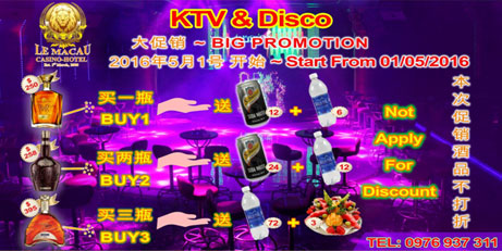 Vui chơi tại LE Macau KTV & Disco và hưởng nhiều chương trình khuyến mãi hấp dẫn. Hãy đến với chúng tôi ngay hôm nay.
